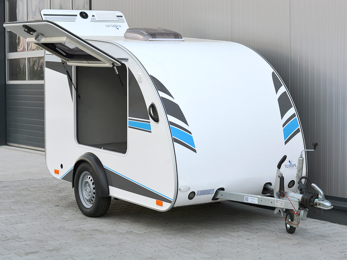 Vă oferim remorca Mini Tommy TMC 25.00, o mini rulotă tipică de camping.